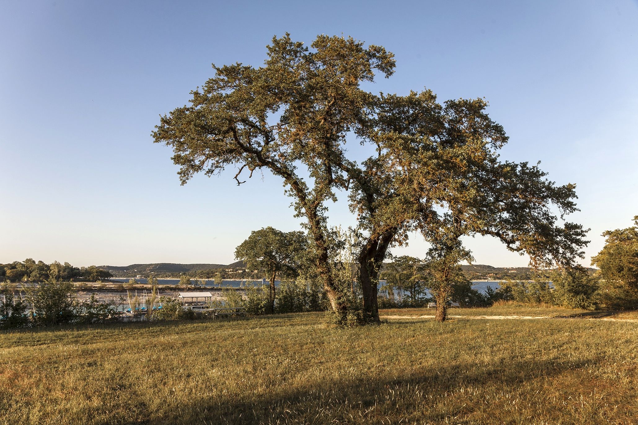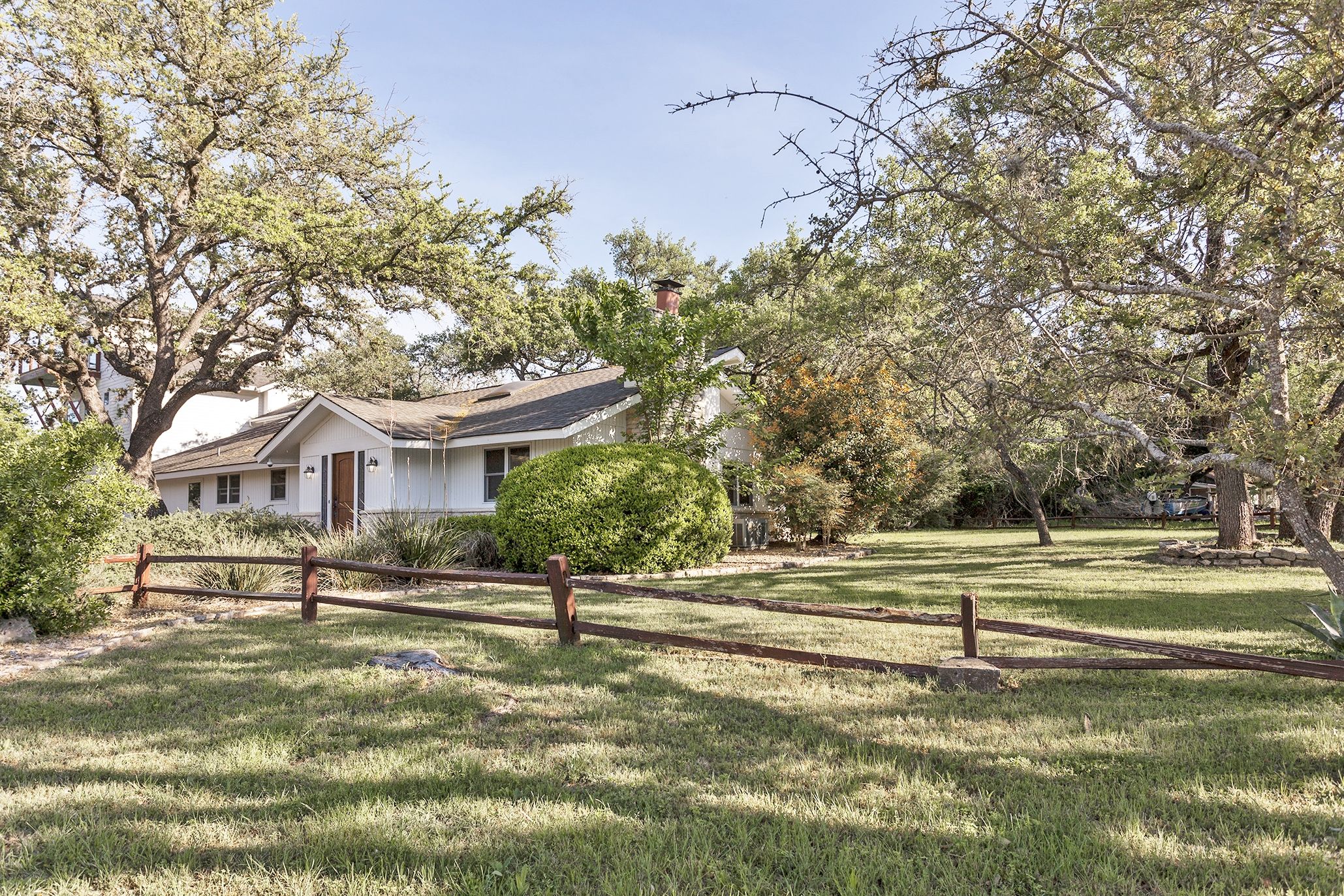 Situated on almost half an acre, mature oak trees create a lovely canopy around the home. A concrete patio under the oak trees is just right for a firepit and lounge chairs for relaxing at the end of the day. And not only is there plenty of room to roam on the lot itself, the property backs to a members-only private park with lakefront access. Take a stroll across the street to fish, drop your boat in Lake Travis via the private boat ramp, or stroll along the water’s edge.