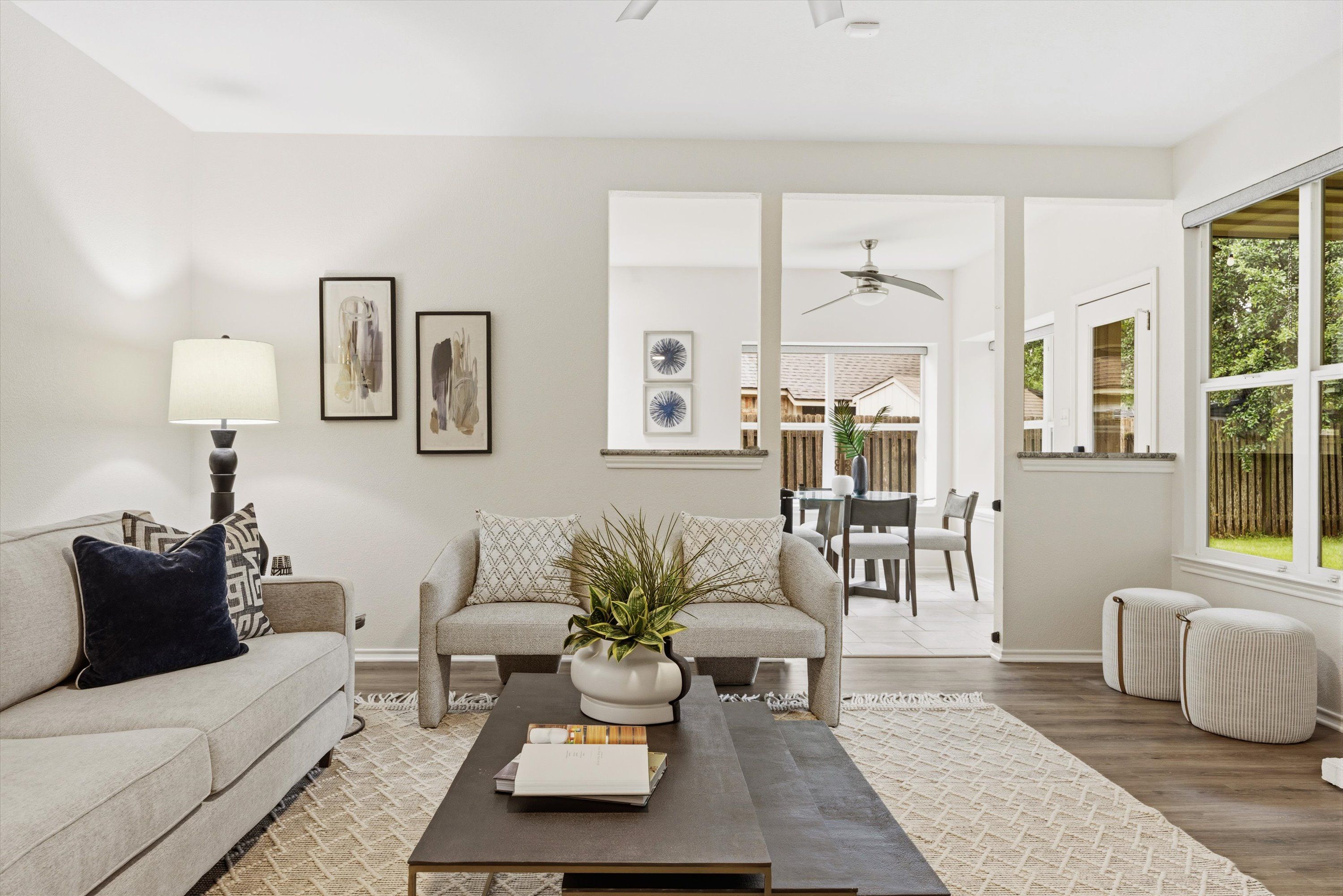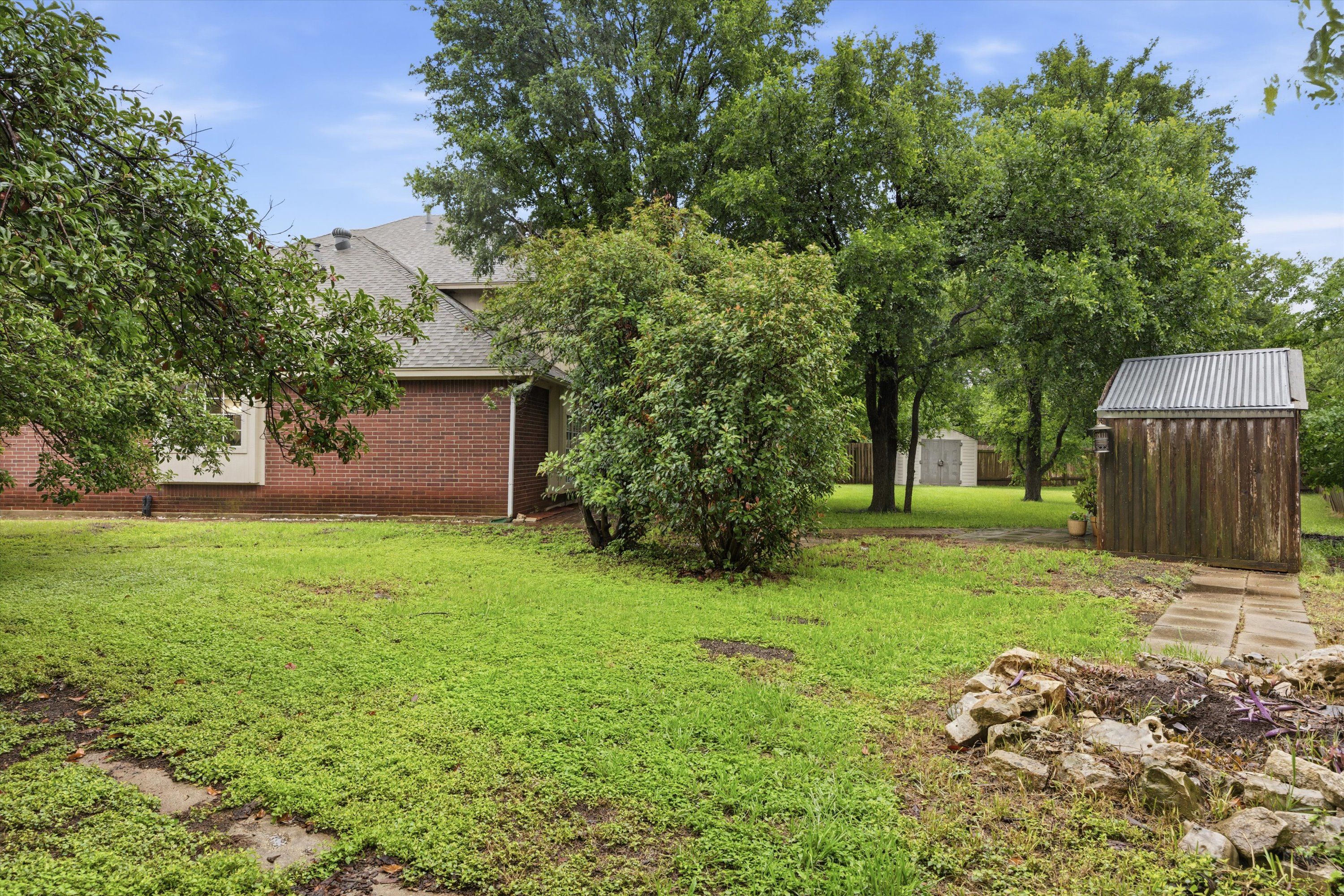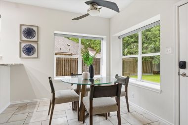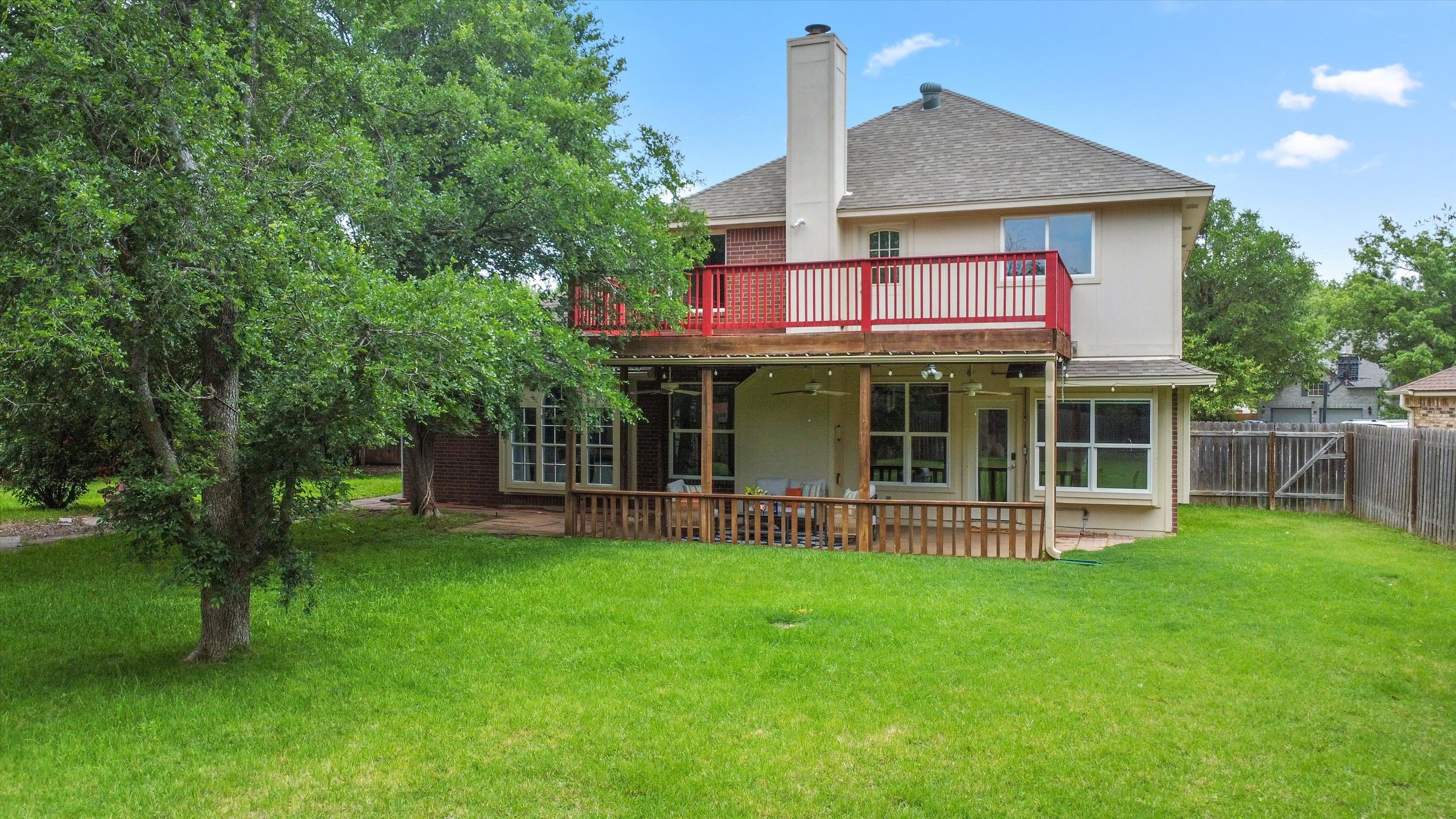 Better yet, the yard has a private gate to a park trail that leads Janet Bartles Park where you can enjoy the open fields, tennis courts, basketball courts, sand volleyball courts, and playgrounds. The Park connects to Buttercup Creek Cave Preserve where you can explore miles of trails. Whether you're hosting, gardening, or just letting the dog burn off some energy, the large backyard and adjacent park can’t be beat.