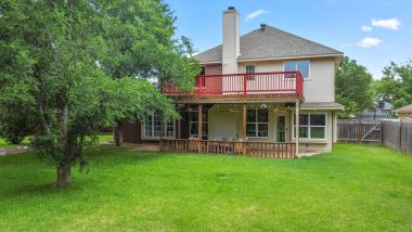 Tucked on a cul de sac in Cedar Park’s Buttercup Creek neighborhood, this two-story red brick home makes a strong first impression with its classically-styled exterior, sprawling yard, and convenience to outdoor spaces and local attractions.