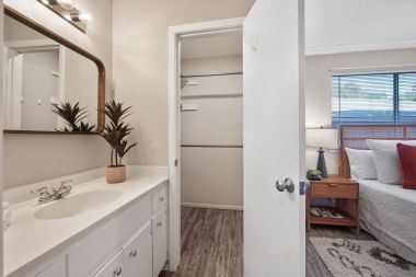 The living room, dining room, and kitchen flow together with ease, creating a natural hub for your daily routines. The dining room is framed by a bay window — the perfect spot for morning coffee with a view of the backyard. Compact yet efficient, the galley kitchen makes smart use of space. The adjoining dining room provides added flexibility when you need to spread out.