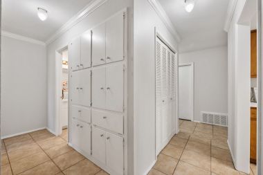 The home also has many practical features to simplify everyday living. Tile and vinyl wood floors are durable and easy to maintain. The hall is lined with closets and cabinets to keep essentials neatly stored out of sight. The home also includes a 2-car garage for convenient parking and extra storage.